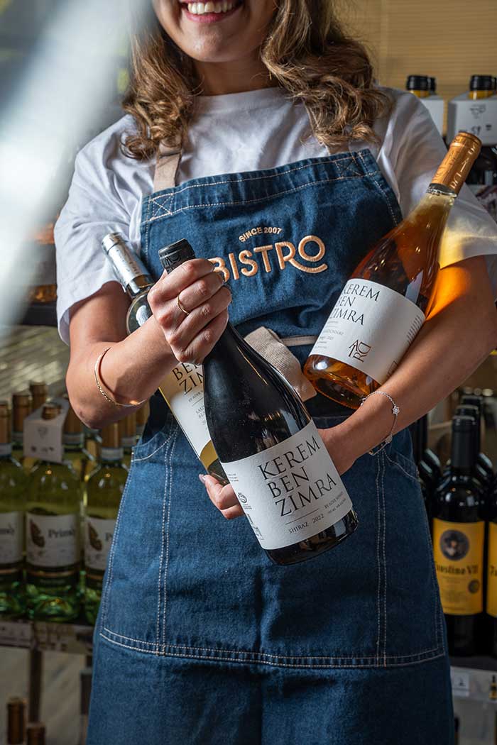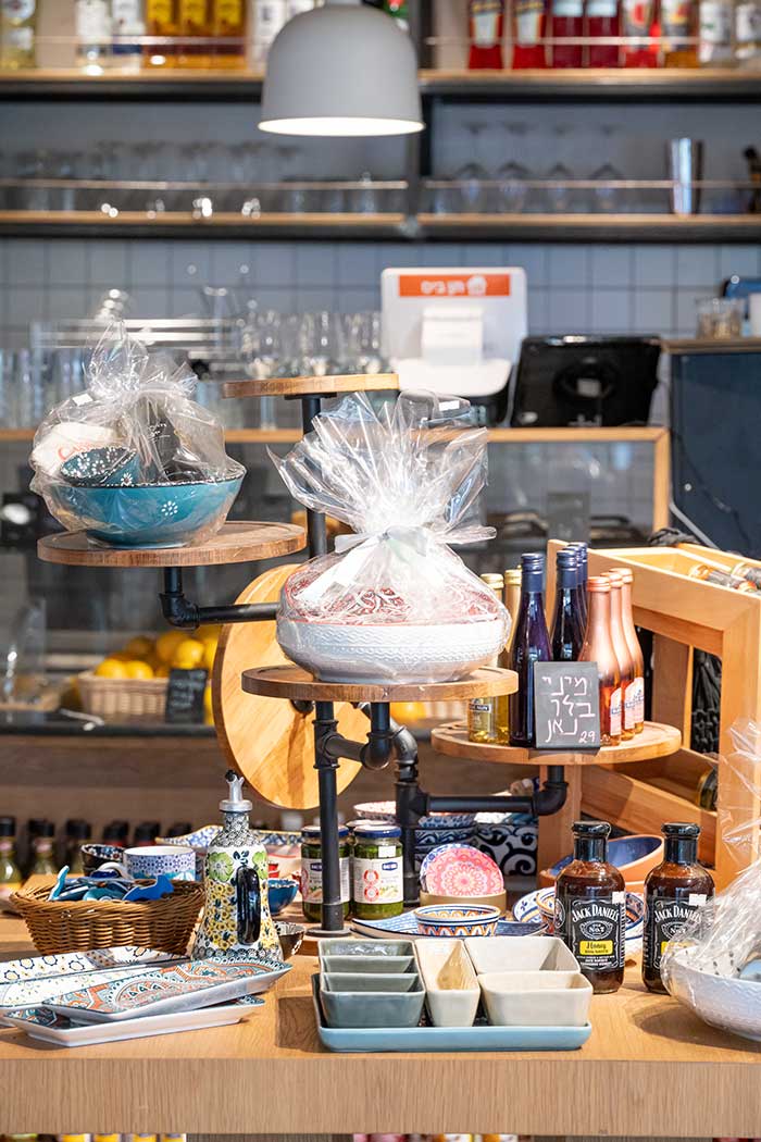 במקום תמצאו גם קיר יינות מרשים מיקבים מקומיים, וכלי הגשה נבחרים לרכישה.